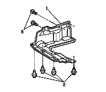 2. Remove the two bolts (3) that secure the stone shield (1).