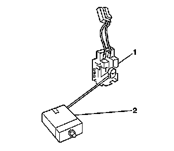 The fuel level sensor is part of the fuel sender assembly. The fuel level sensor (1) consists of a float (2), a float arm, and a variable resistor (1). The fuel level is measured by the position of the float in the fuel tank, and is indicated by a gauge in the instrument panel cluster (IPC) assembly. When the fuel level changes, the float position changes. The change in the float position increases or decreases the resistance reading of the variable resistor. The change in the resistance causes the position of the fuel gauge pointer to change.