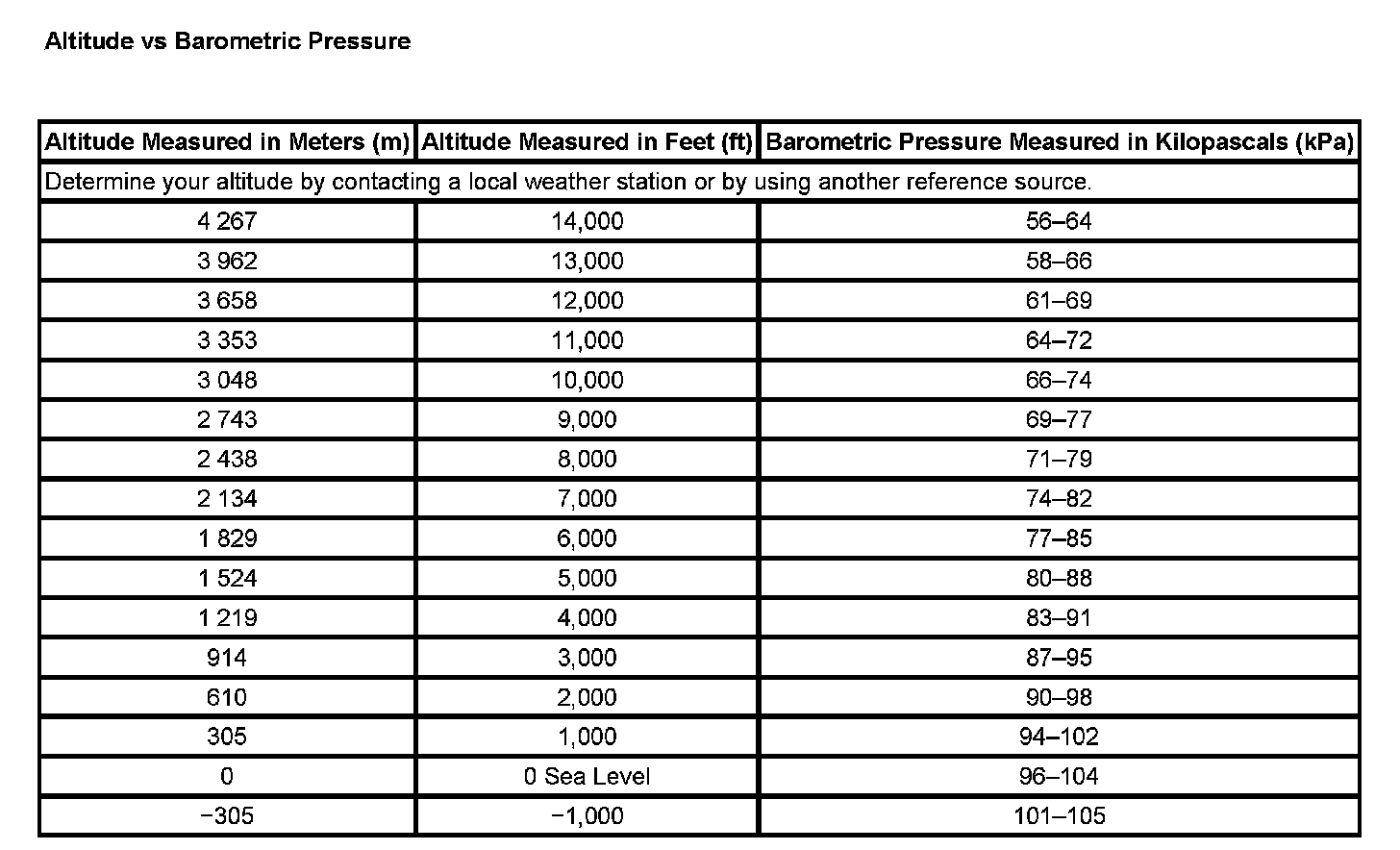 Altitude Vs Barometric Pressure: