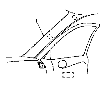 7. Install the windshield side garnish moldings (1). Refer to Garnish Molding Replacement - Windshield Pillar (Removal and Replacement) in Interior Trim.