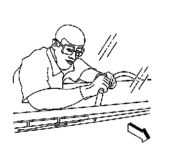 12. Remove the bottom of the window from the urethane adhesive using a long utility knife or similar tool.