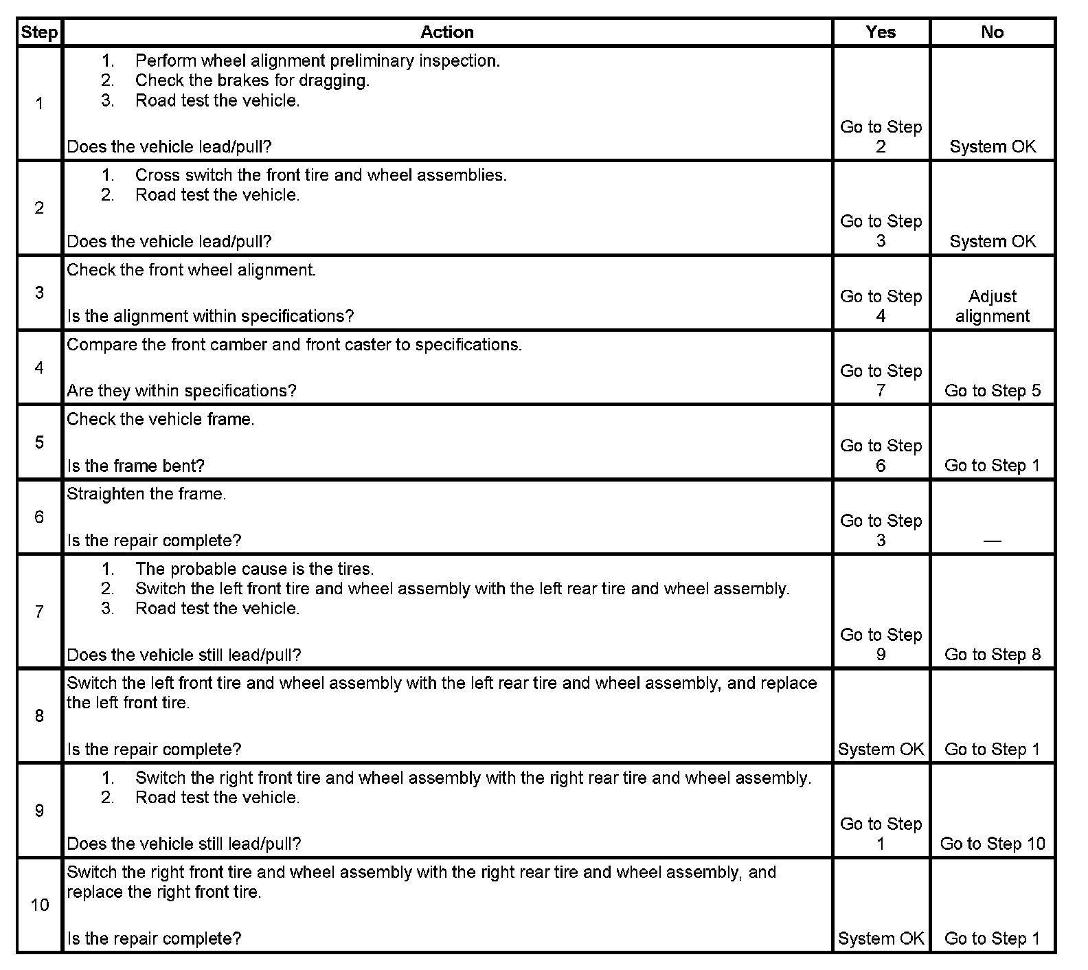 Radial Tire Lead/Pull CorrectionSteps 1 - 10: