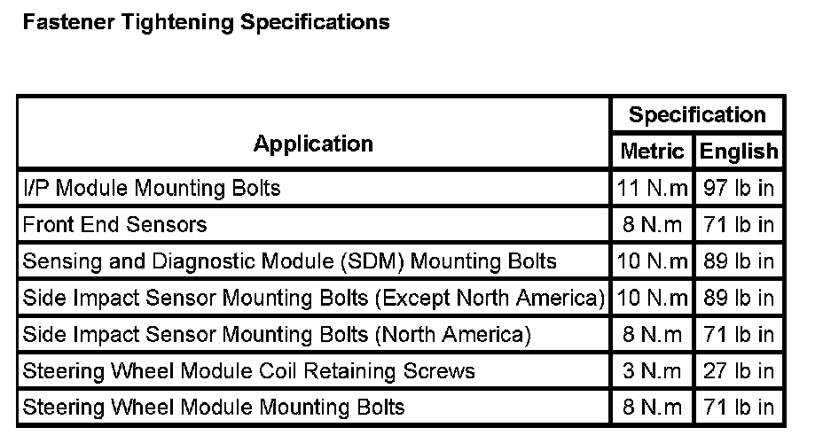 Fastener Tightening Specifications: