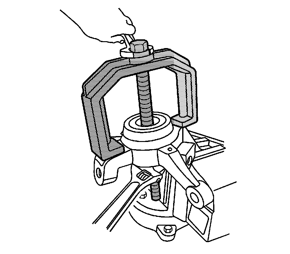 7. From either the control arm bushing set J 21474-01 or the front hub service set CH-46560 , install the nut (3) J-21474-4 (CH-46560-05) to the rod J-36661-2 (CH-46560-04).