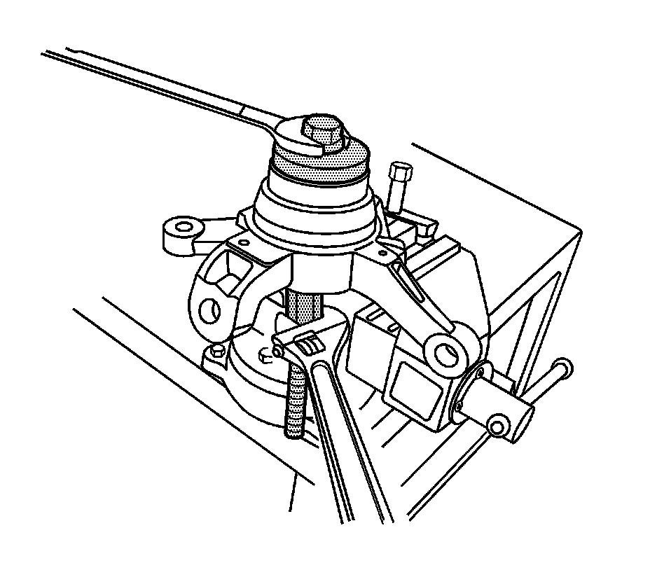2. Remove the wheel hub, bearing, knuckle, and brake shield as an assembly. Refer to Steering Knuckle Replacement (Steering Knuckle Replacement).