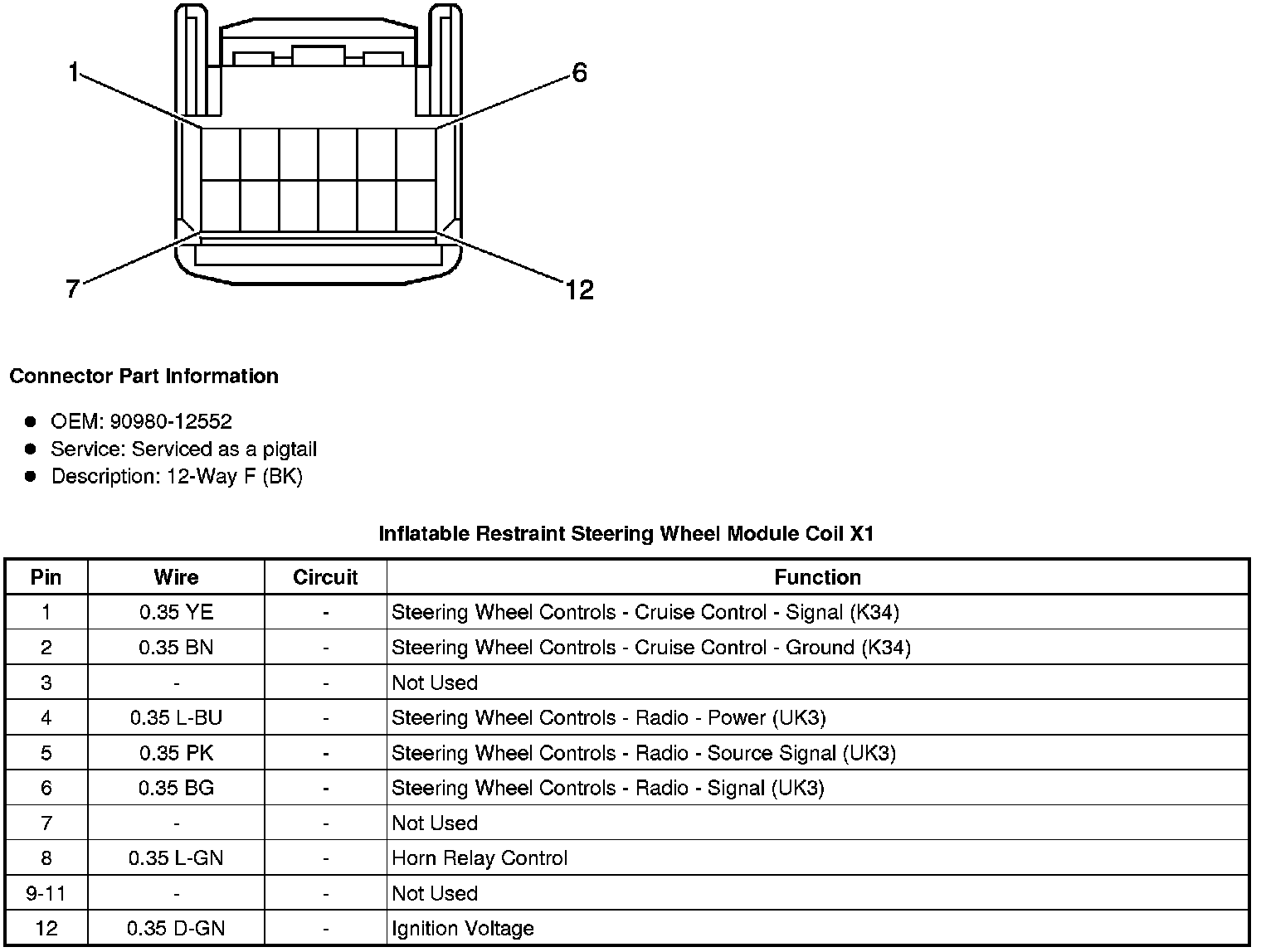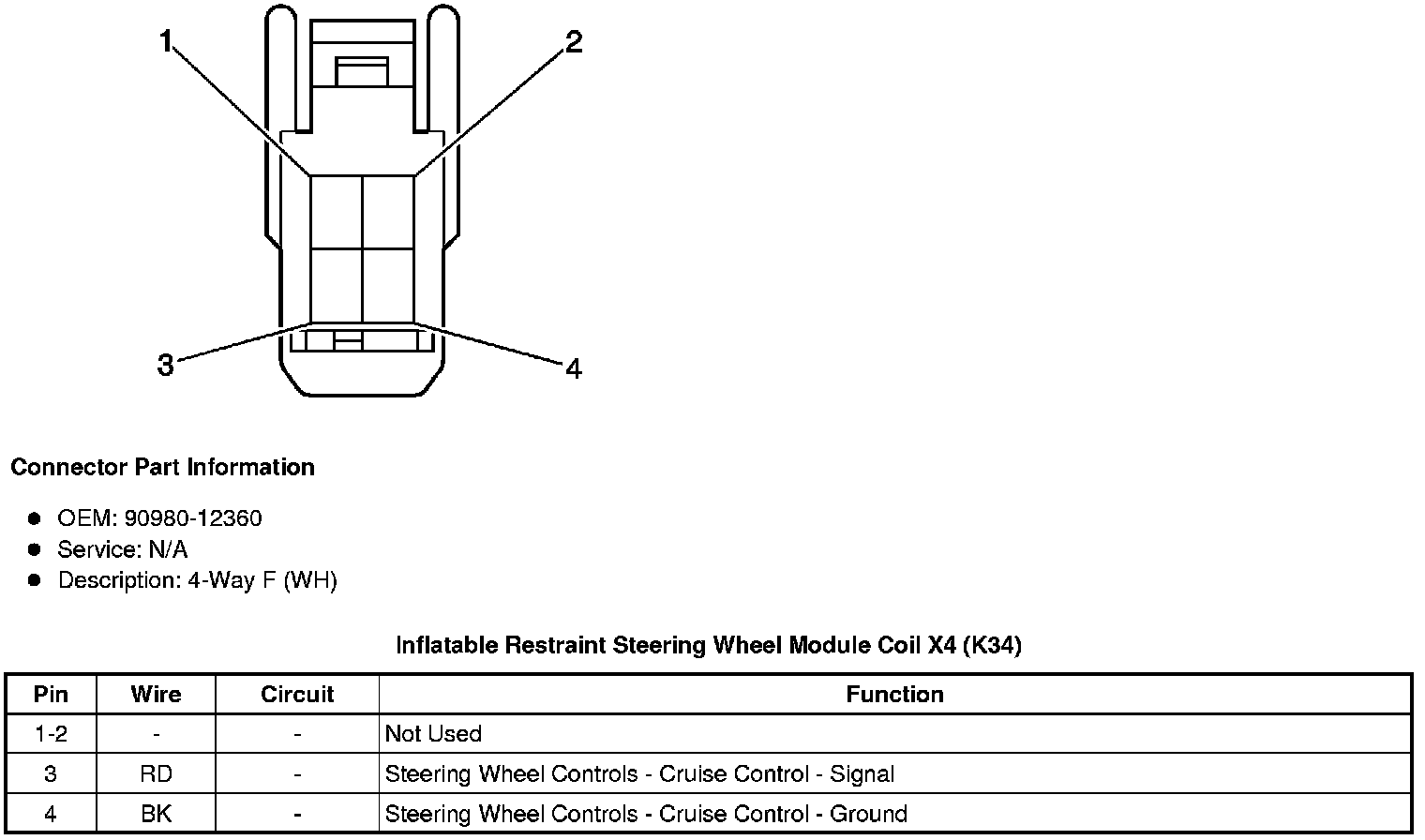 Inflatable Restraint Steering Wheel Module Coil X4 (K34)