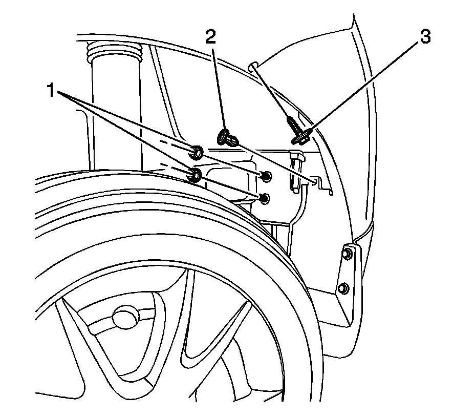 5.Remove the rear bumper fascia bolt (3).