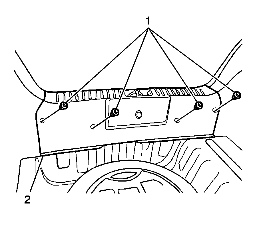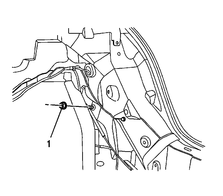 2.Install the rear bumper fascia-to-lower back panel nut (1) through the gap between the rear side panel trim and the lower back panel.