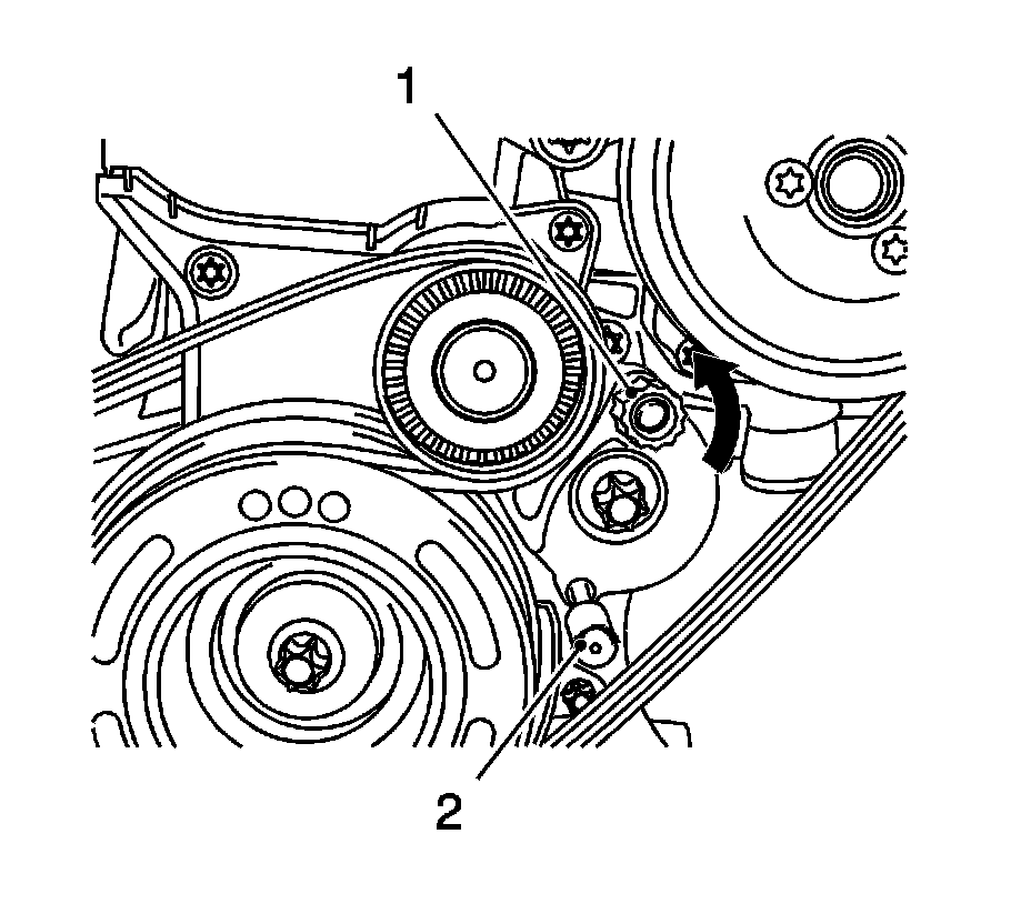 * Apply tension to the belt tensioner via the cast projection (1) in the direction of the arrow, counterclockwise, and allow to slide back slowly.