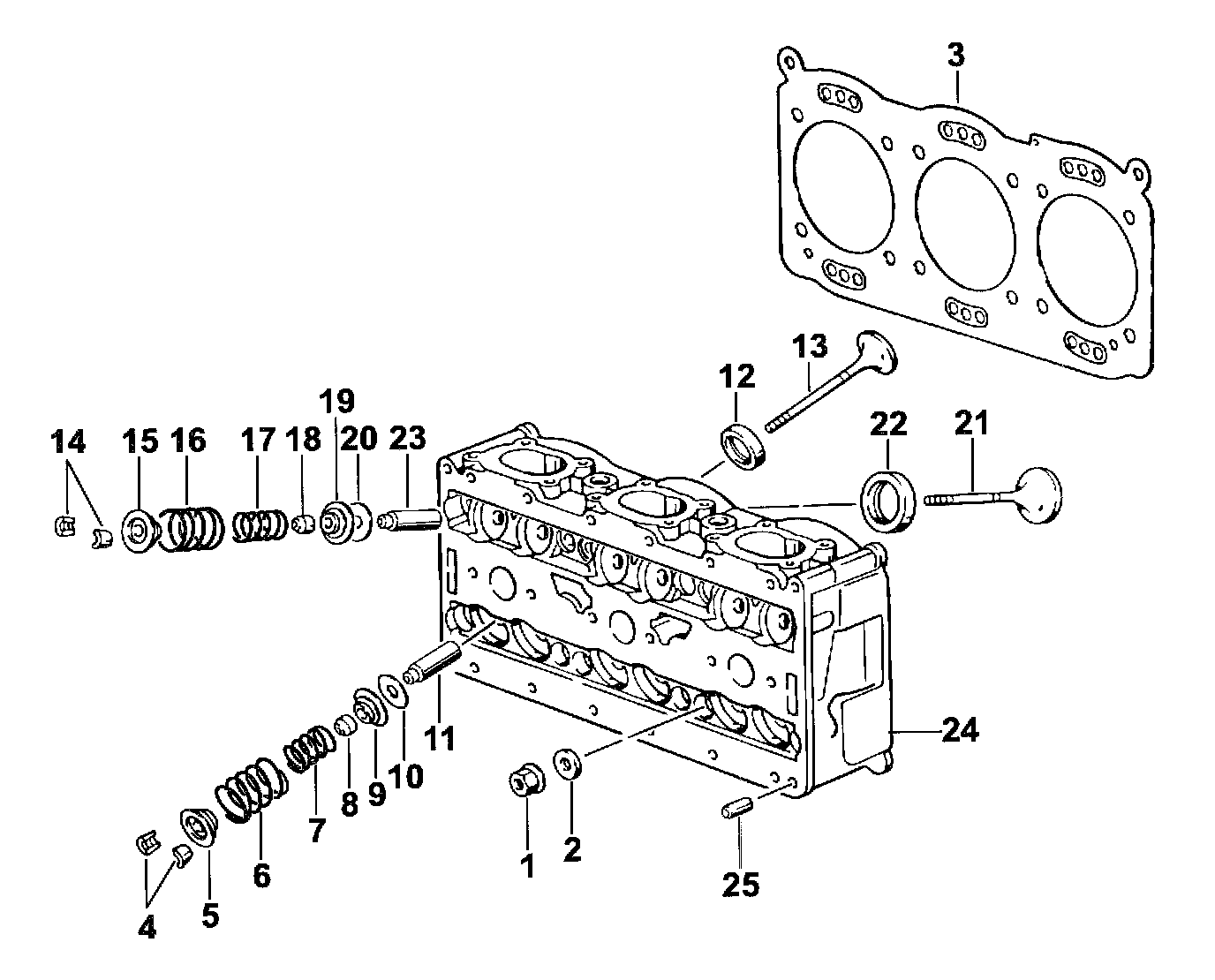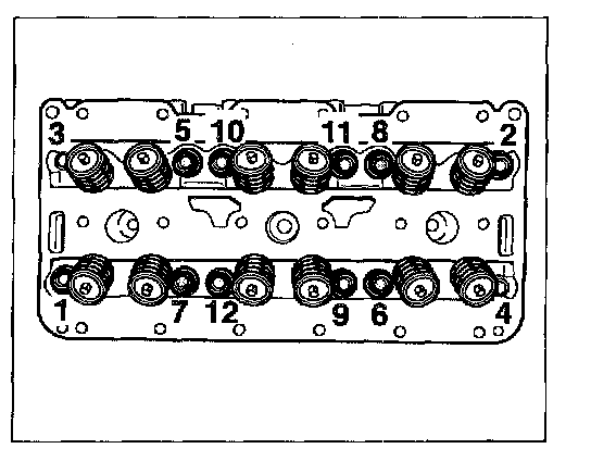 2. Unscrew cylinder head. Unscrew the twelve internal-serration screws in -turn steps in the order specified. Work according to the order specified in order to avoid distorting the cylinder head.