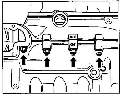 - Prepare four tension rod bolts. Push sealing washers on to tension rod bolts. Feed lightly oiled 0-rings with conical sleeve from special tool 9511 over the threaded area and push them on to the tapered section towards the head of the bolt.