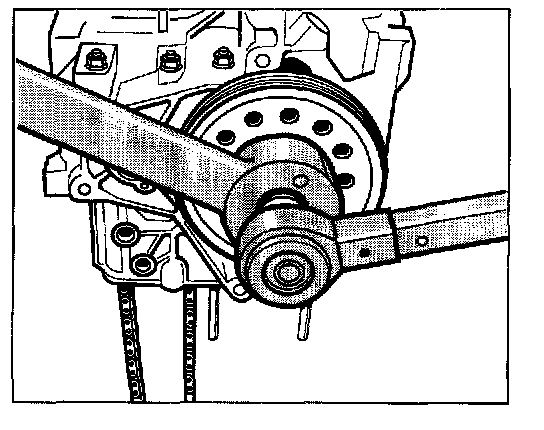 - The holding wrench must be in contact with the belt pulley when tightening.