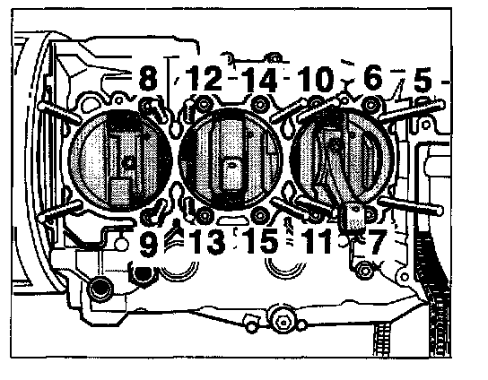7. Loosen the hexagon nuts (wrench size 17) in the left crankcase half (cylinder bank 1-3).