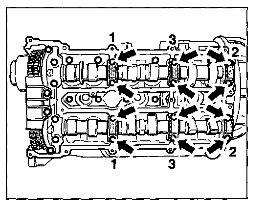 The fastening screws of the inlet camshafts and the outlet camshafts must always be replaced.