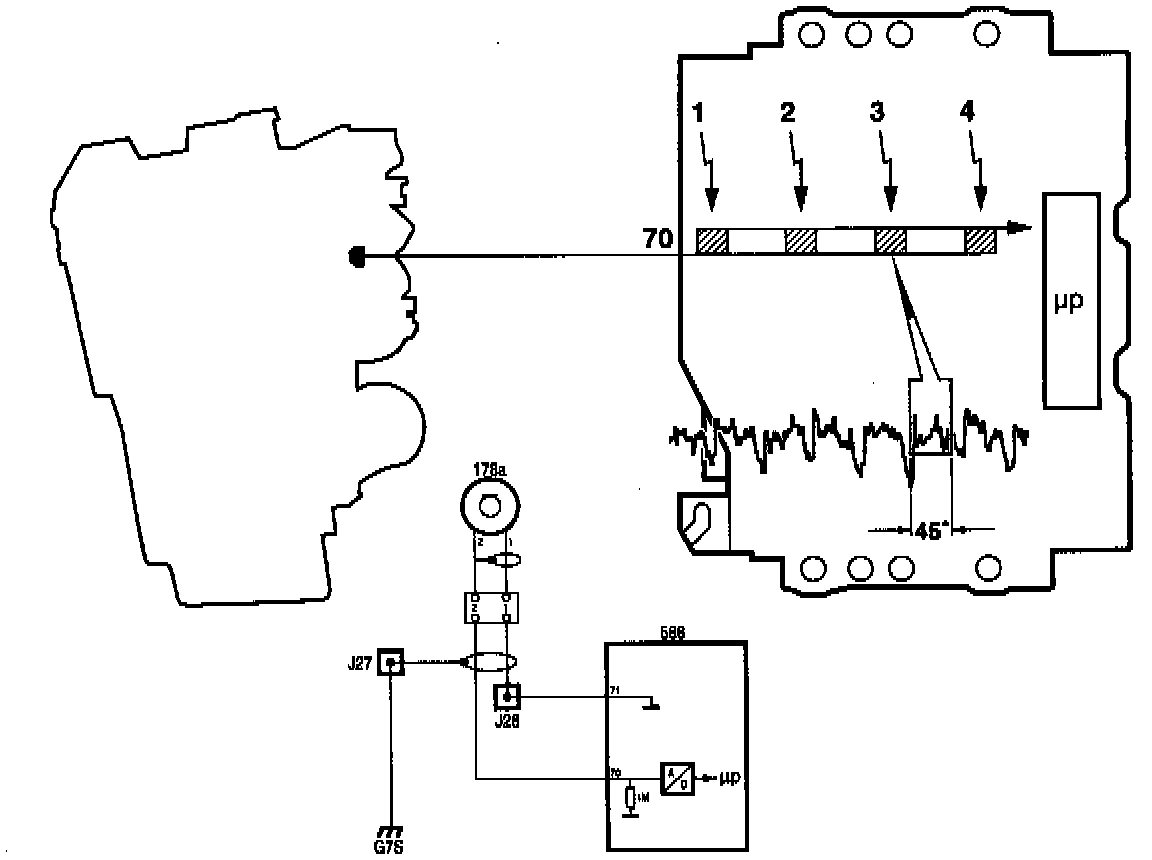 Should the sensor fail to work or in the event of a break in the circuit (no continuity), the ignition will be retarded by 12° in the event of a load on the engine which would entail a risk of knocking.