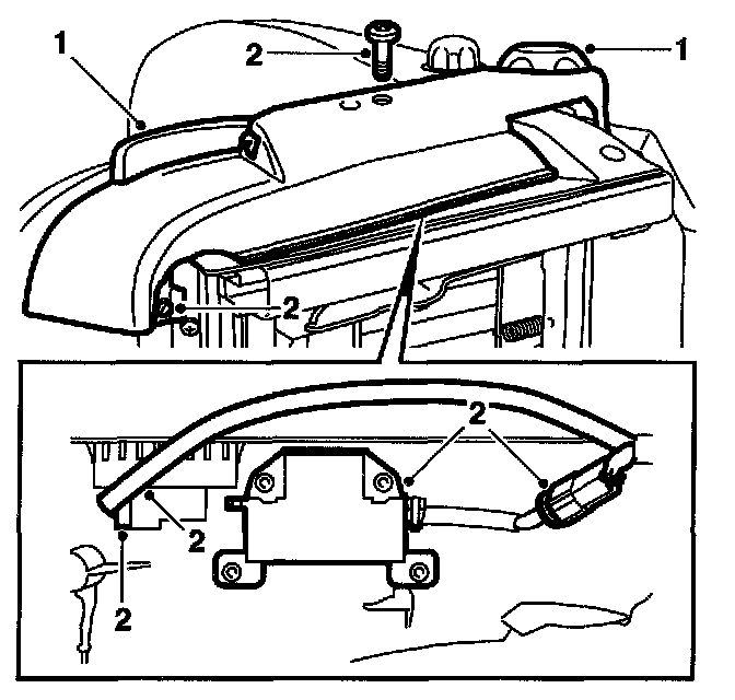 Remove the upper seat cowl, 2 covers and 3 screws. Lift the cowl at the back and pull forward.