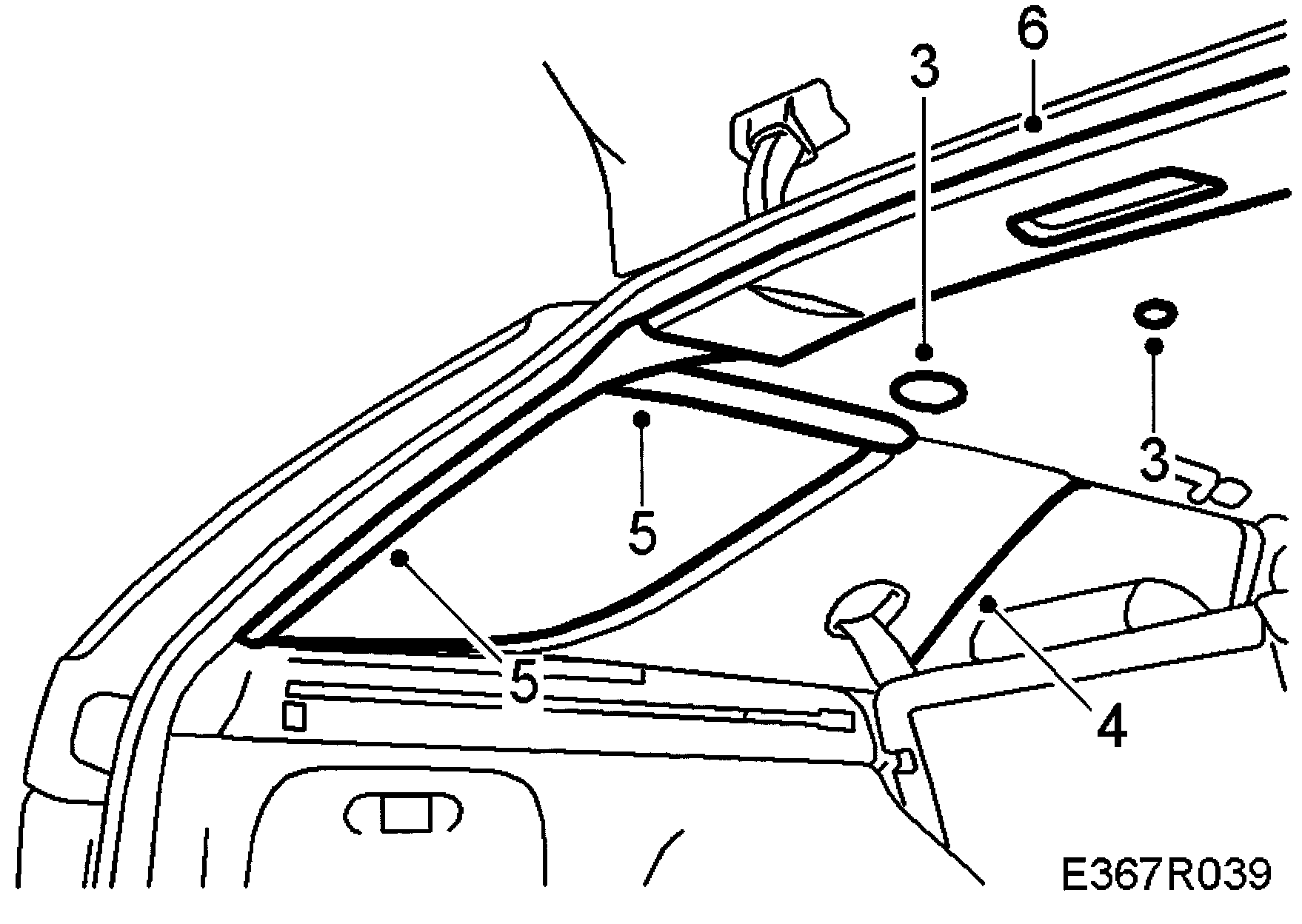 3 Remove the fasteners in the roof trim over the rear side windows and undo the top of both C-pillar trims.
