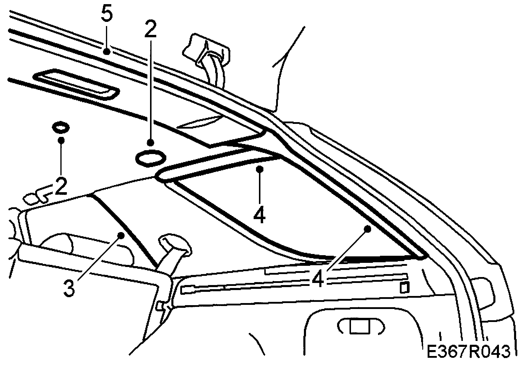 2 Remove the D-pillar trim and the roof covers over the rear side windows.