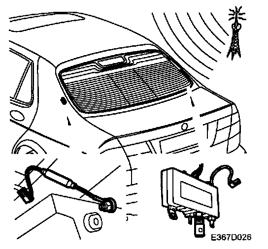 The antennas for radio reception are integrated with the rear window and are located as follows: