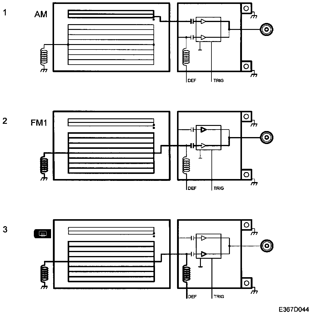 3 FM2 antenna connected to the same connector as the AM antenna on the rear window. It is connected to a loop across the AM antenna and to the electric heating element.