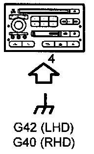 The main unit is grounded (main ground) at grounding point G42 (LHD) or G40 (RHD) via pin 4.