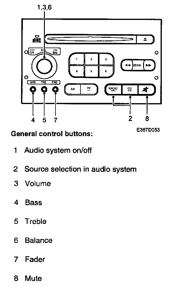 The audio system is turned on/off by pressing the volume control knob. When switched on, the system starts with the last settings that were active.
