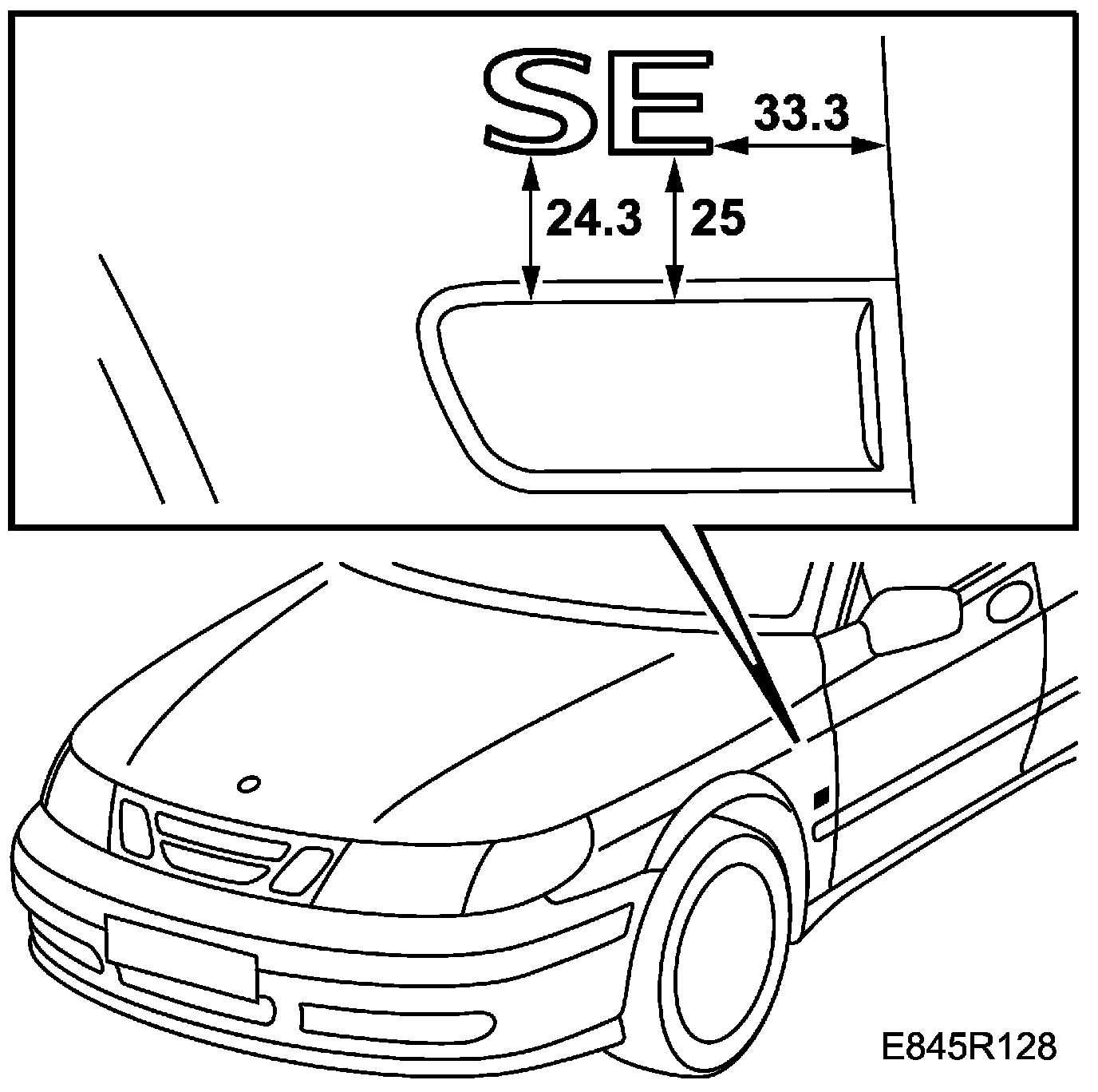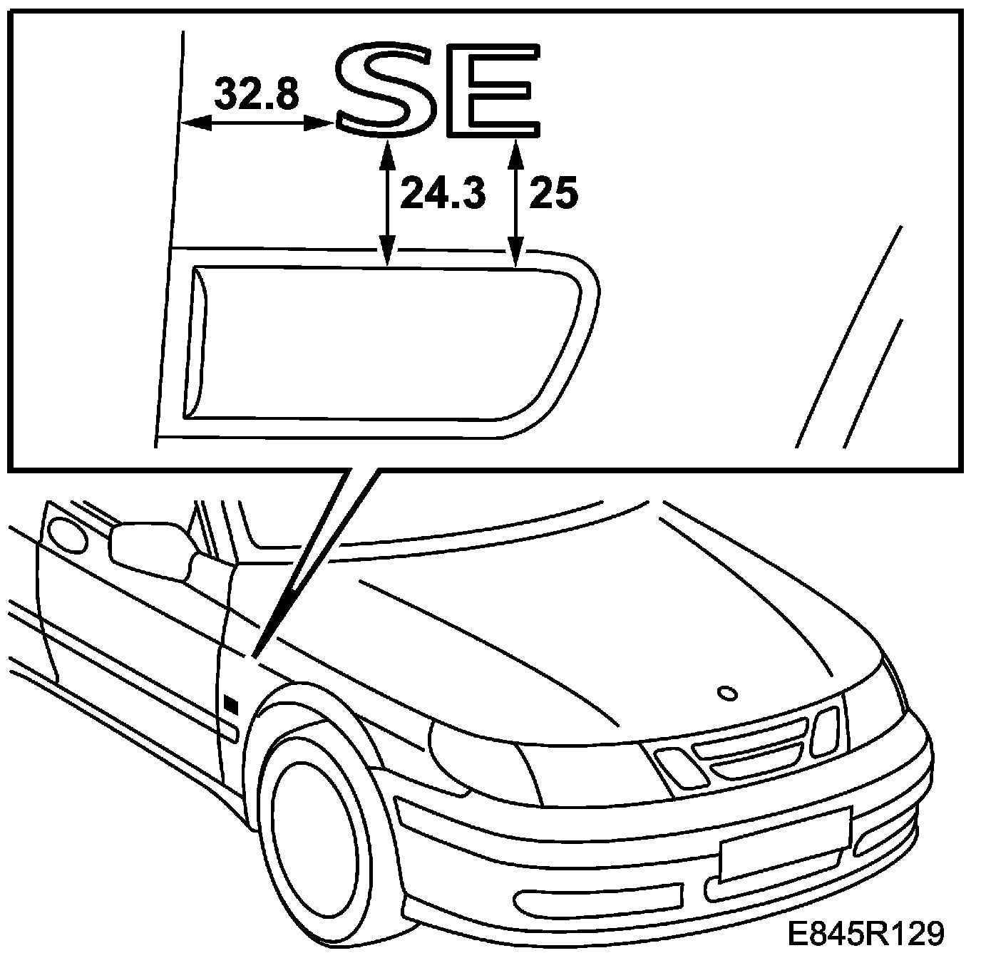 Mount the SE emblem on the left-hand front wing in accordance with the measurements in the illustration.