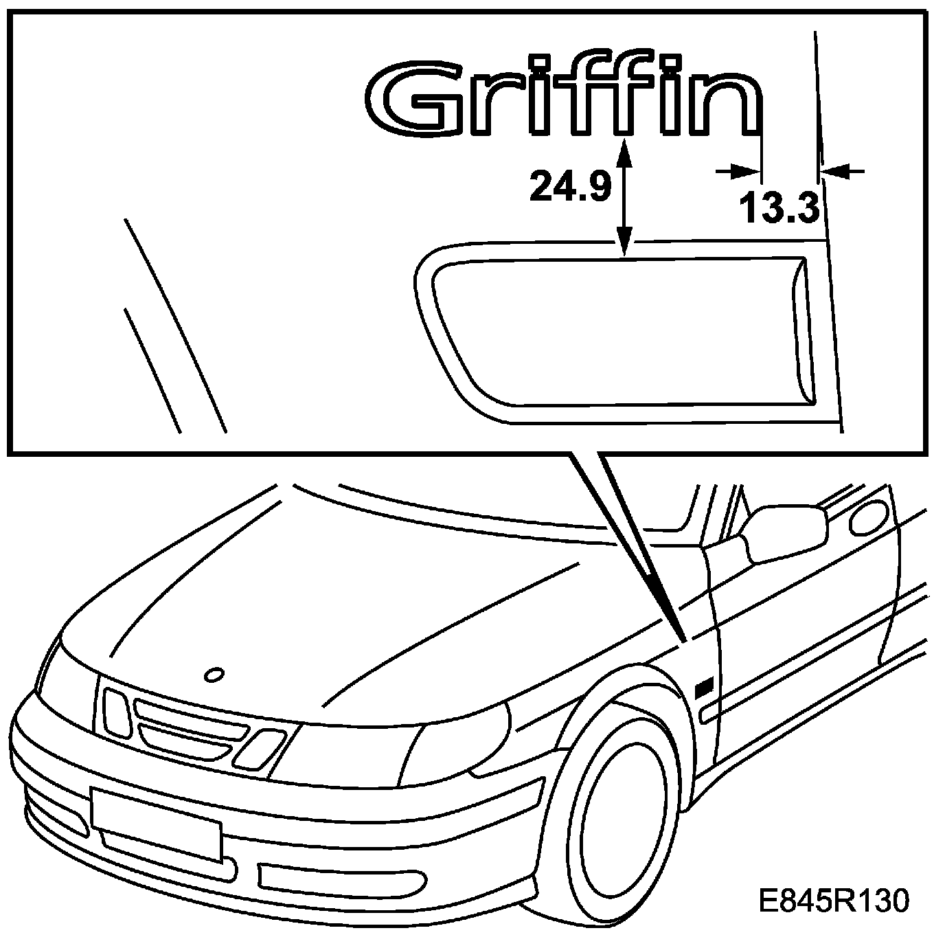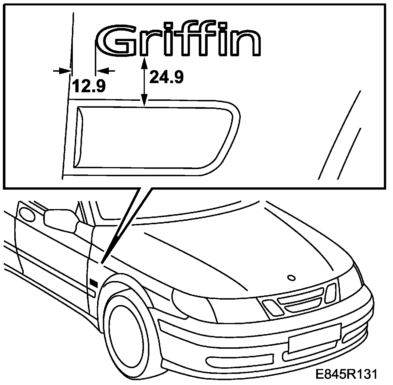 Mount the Griffin emblem on the left-hand front wing in accordance with the measurements in the illustration.
