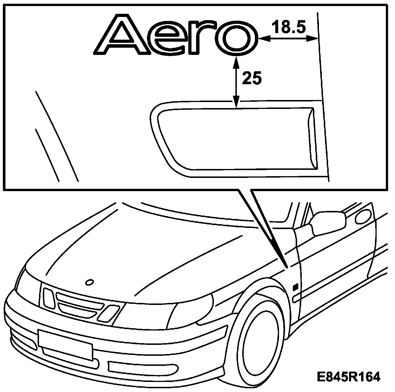 Measure out the position of the emblem on the front wing, as illustrated, and affix the Aero emblem.