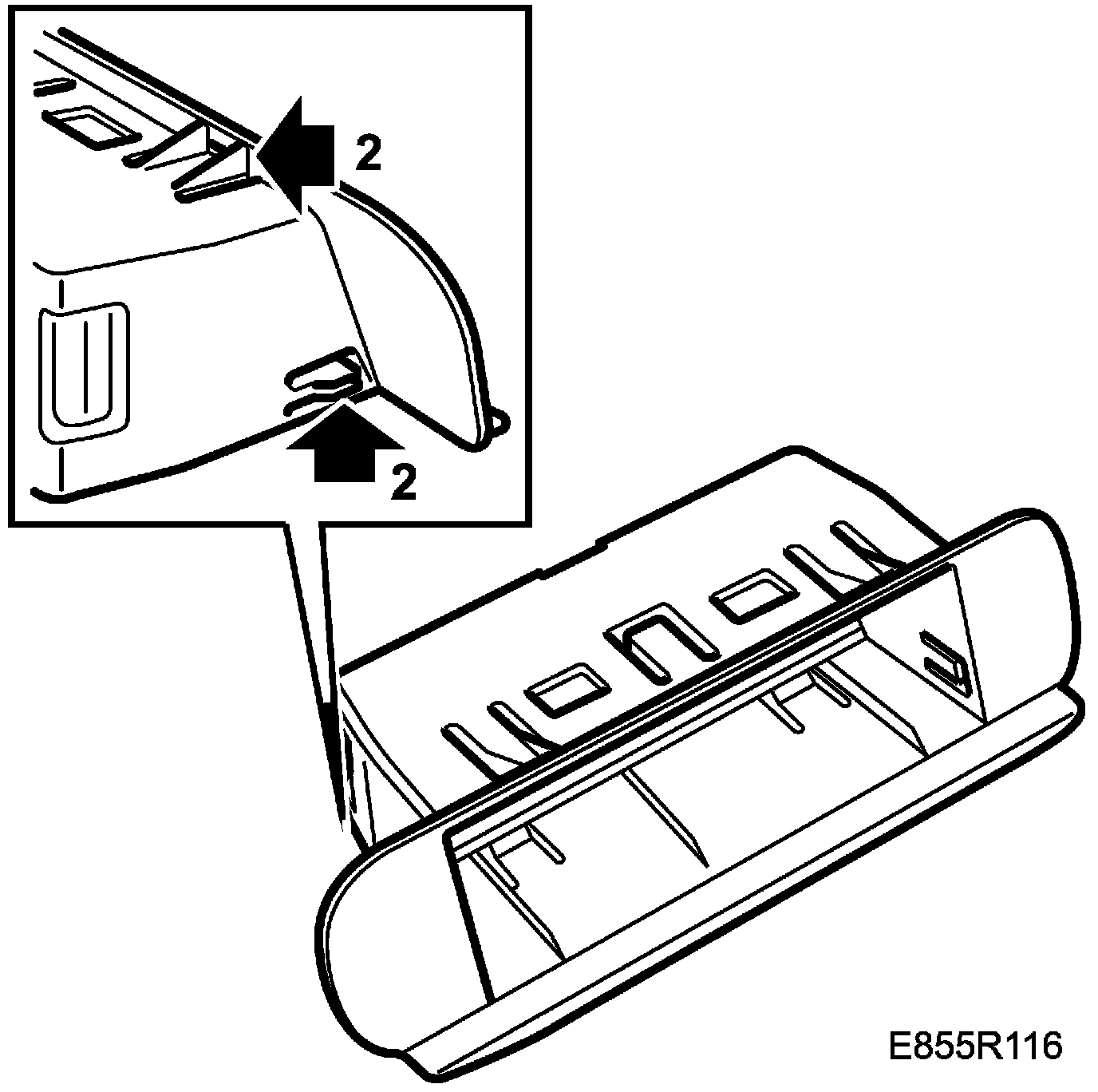 2. Withdraw the ashtray holder while carefully bending the clips aside, first the 2 lower ones and then the 2 upper ones, using a screwdriver.