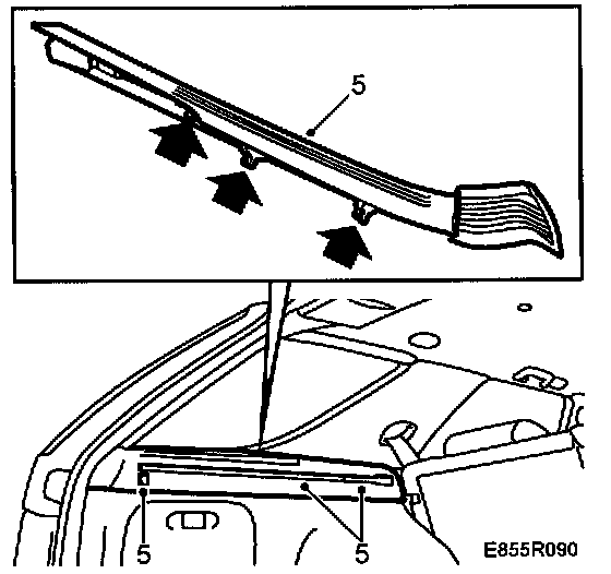 5 Remove the screws and lift out the parcel shelf support, secured with clips.