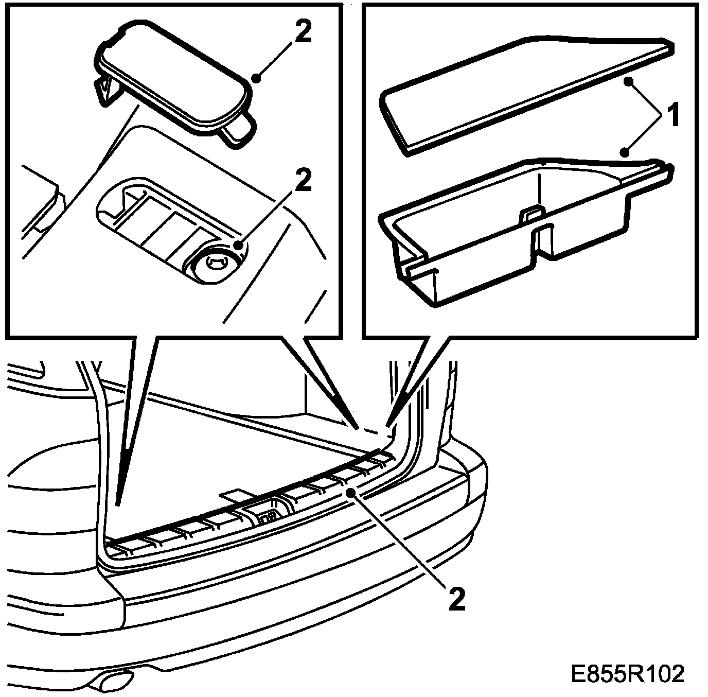 5. Remove the parcel shelf support, 1 cover and 3 screws.