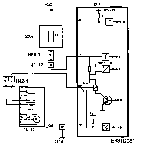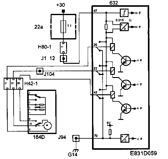 1 When the car is not locked, the microswitch is in position pin 10. When the electric motor is supplied with current from pin 22 on the TWICE control module and the central locking system is locked, the microswitch position is changed by the movement of the electric motor to pin 9.