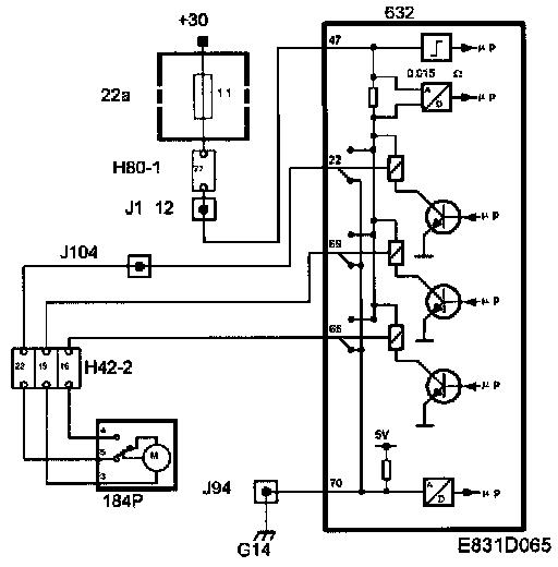 1 When the car is not locked, the microswitch is in position pin 5. When the electric motor is supplied with current from pin 22 on the TWICE control module and the central locking system is locked, the microswitch position is changed by the movement of the electric motor to pin 4.