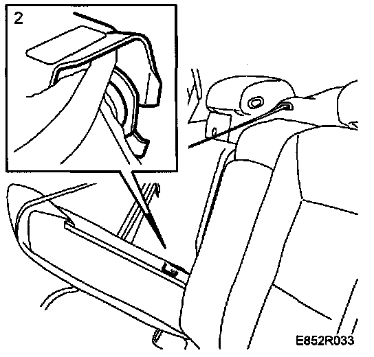 NOTE: Check that the center seat belt runs in front of the spindle pins and backrest.