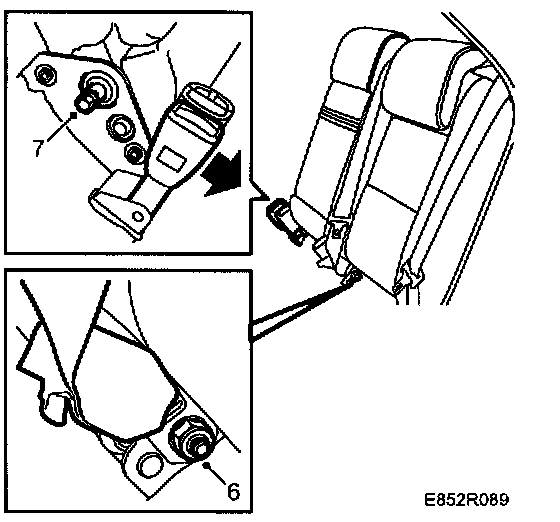 6 Remove the center seat belt lower mounting.