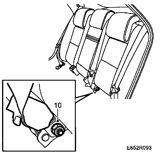 10 Fit the center seat belt lower mounting.