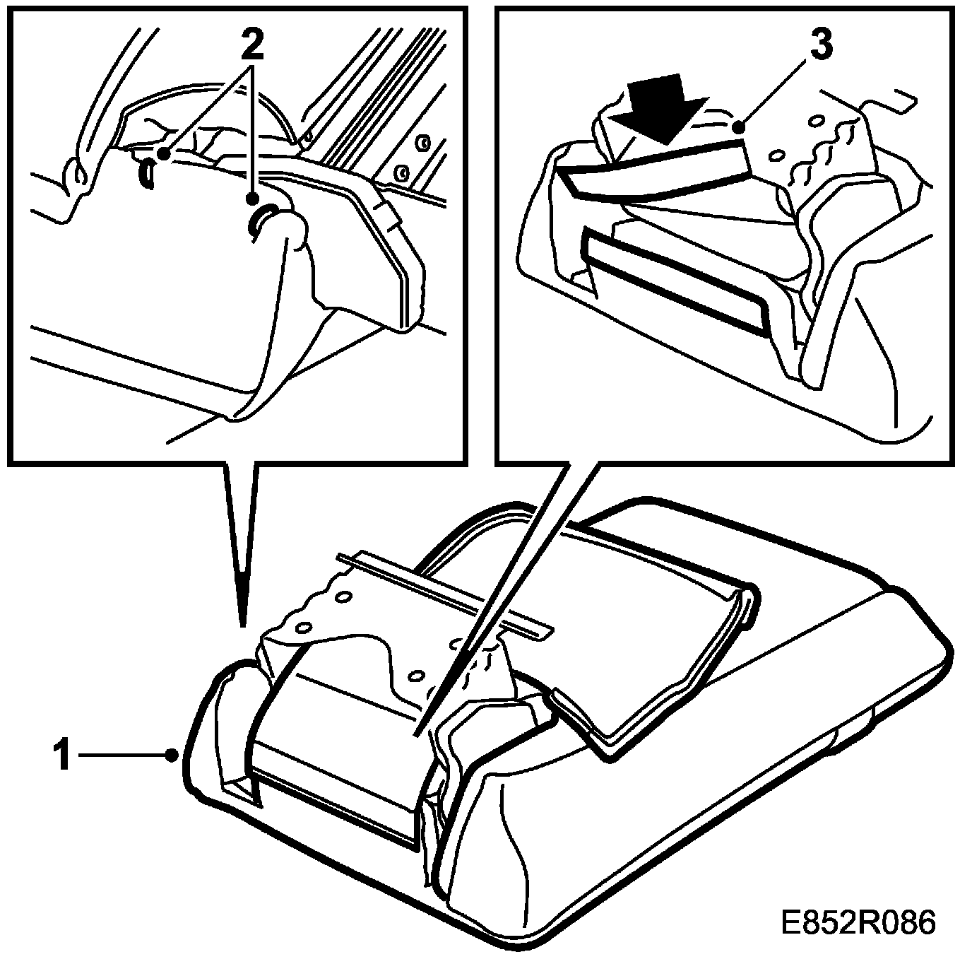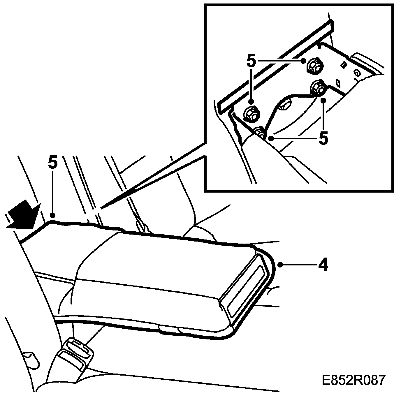 5. Fit the armrest to the rear seat backrest with the 4 nuts and fasten the upholstery tab to the edge of the plate.