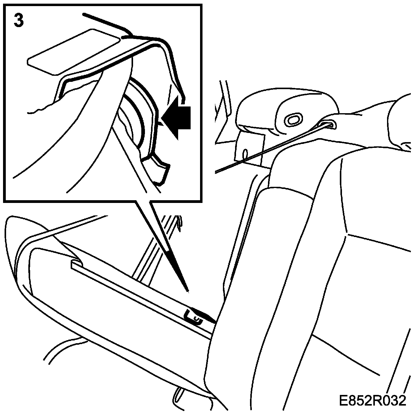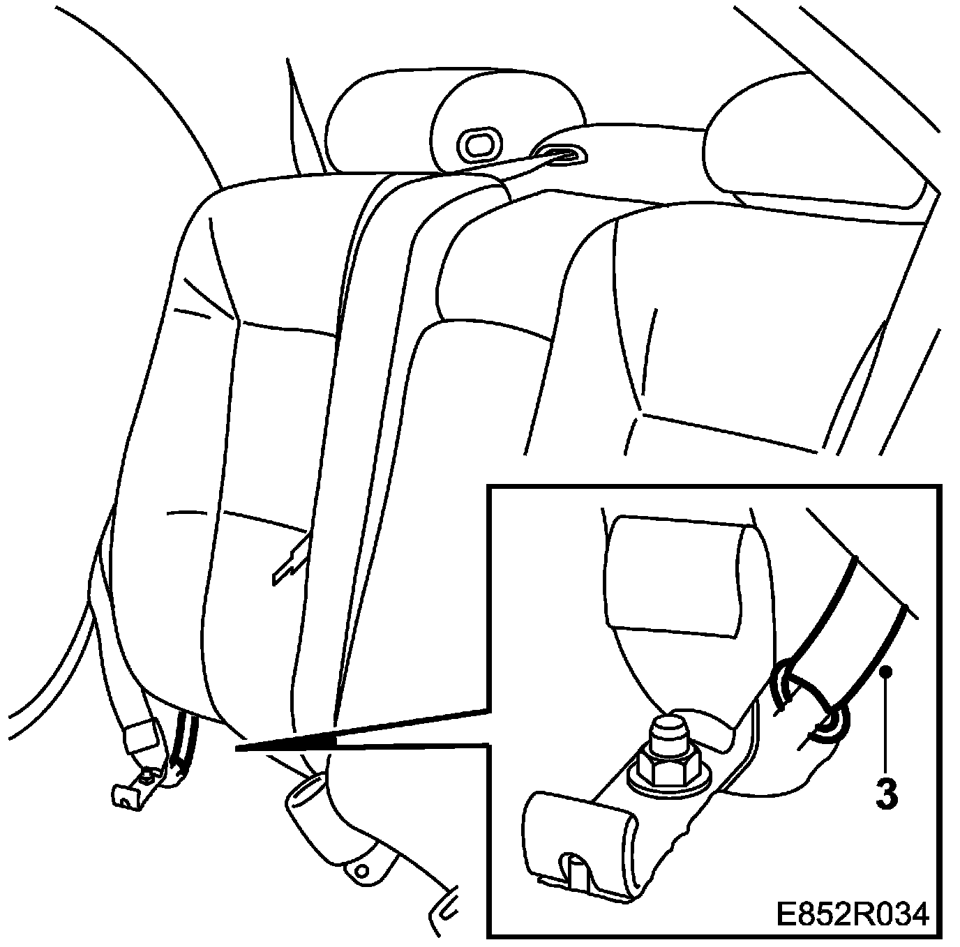 NOTE: Check that the centre seat belt runs in front of the spindle pins and backrest.