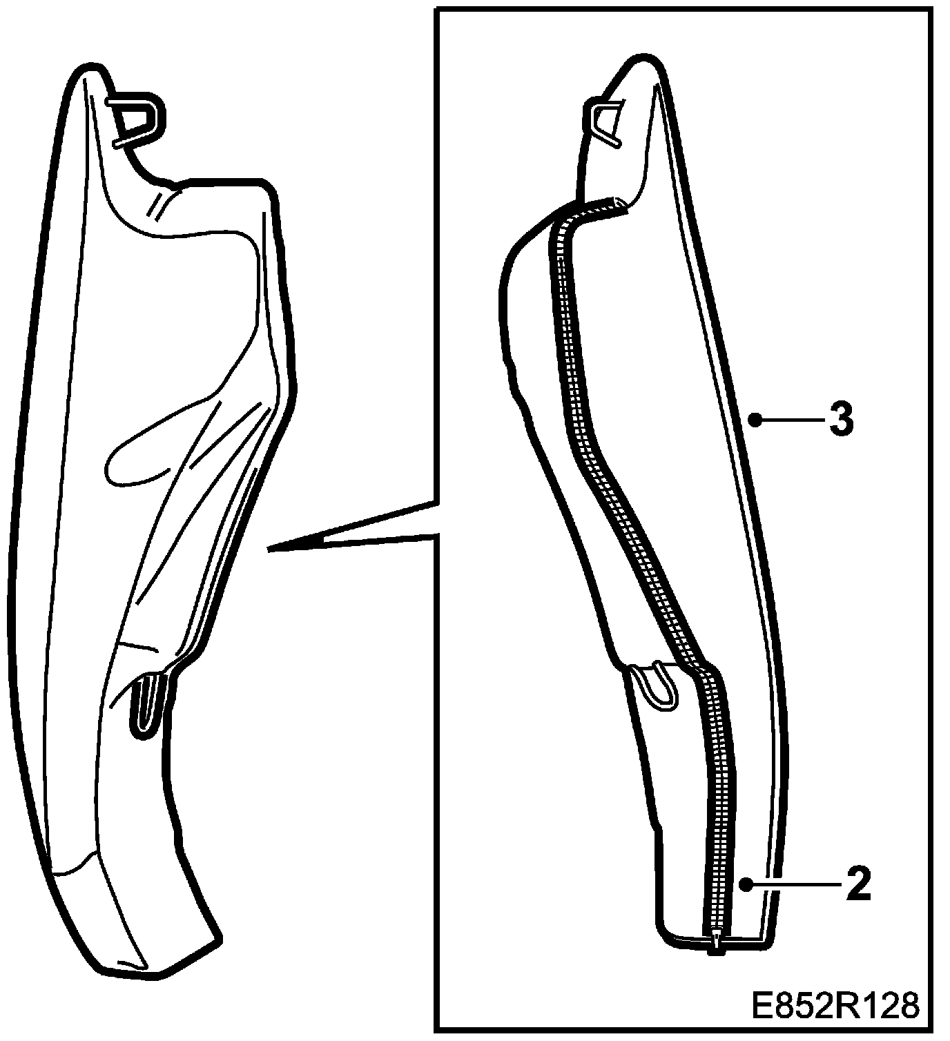 1. Remove the side bolster by pulling on the top edge to release the locking tongue, unhooking the bottom locking tongue and lifting away the bolster.