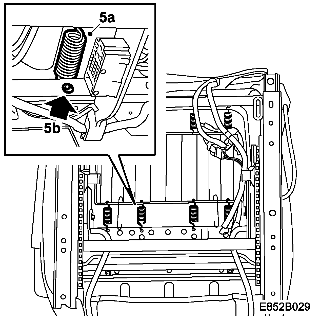2.b. Undo the seat upholstery in the front edge of the seat pan.
