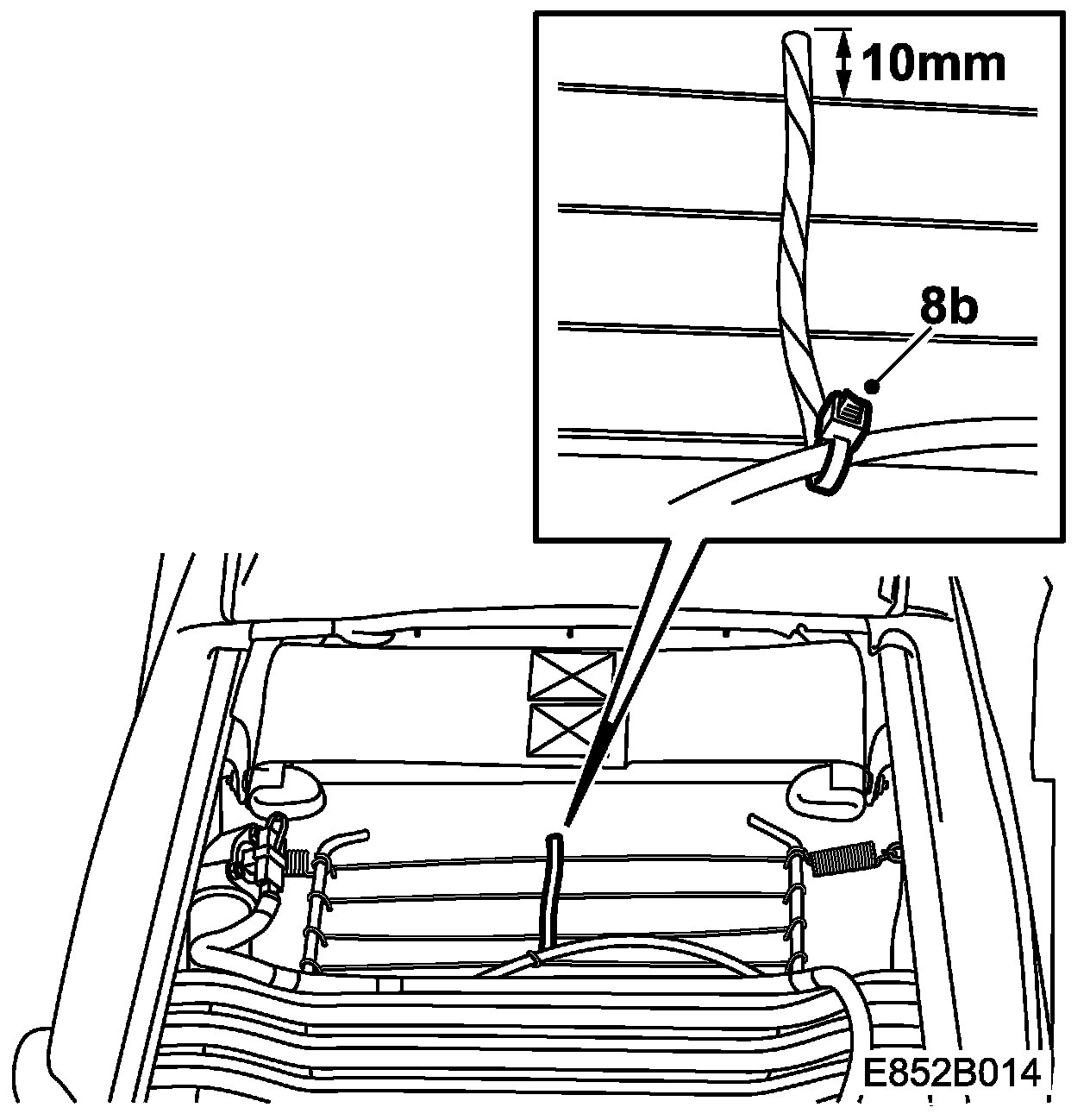 8.b. Fit a cable tie in the same way as the ring was fitted. Do not tighten the cable tie too hard.