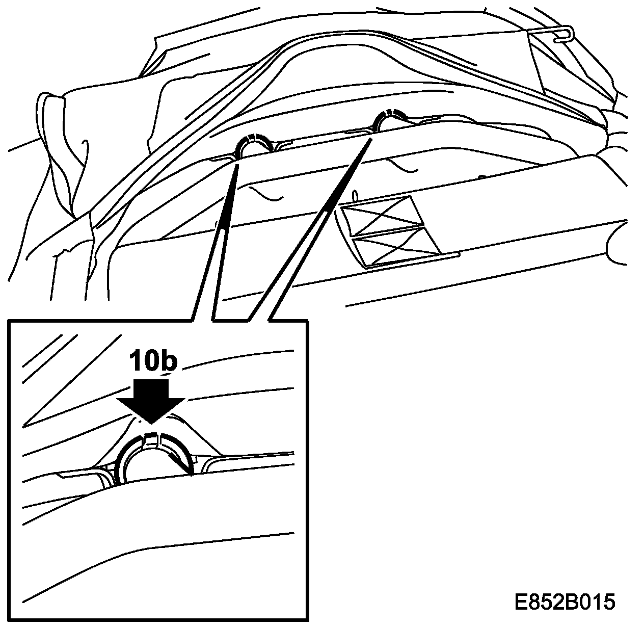 10.a. Unhook the three upholstery hooks and fold up the rear upholstery.