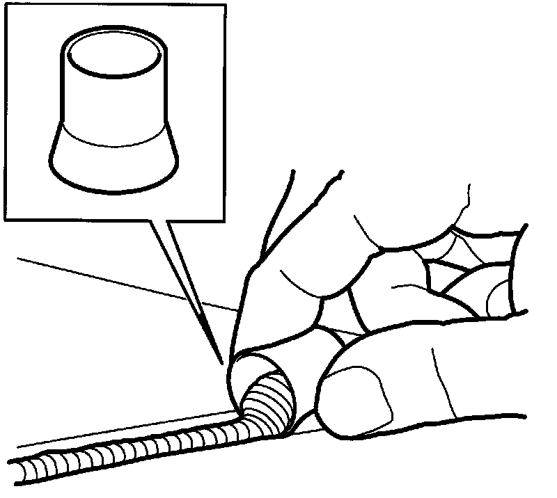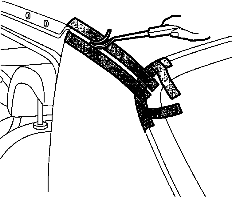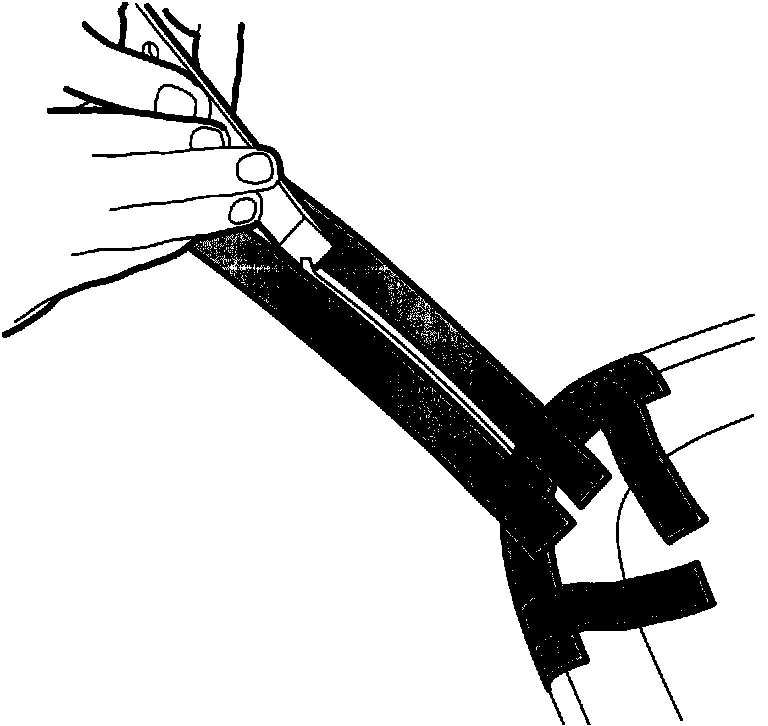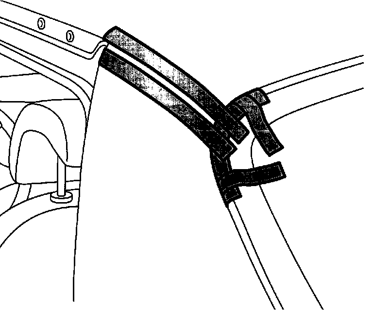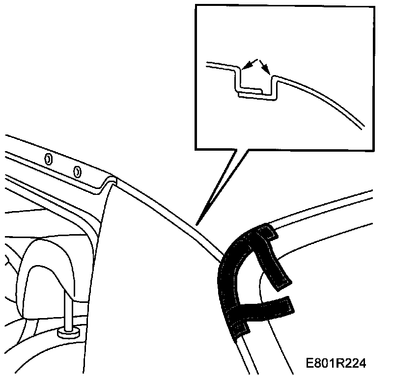 2. Bend of the seal lip of the rubber moulding. Place masking tape between the rubber moulding and the roof plate.