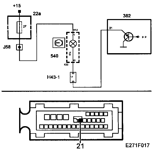 ^ Shorting to ground in the lead between pin 21 of the TC/ABS control module and pin 10 of the main instrument unit (K20).