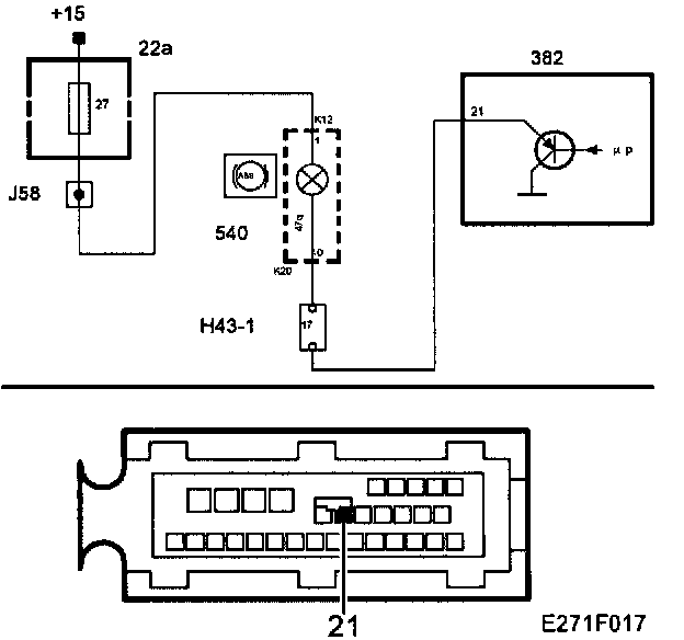 Fault in the circuit between TC/ABS control module pin 21 and the warning lamp in the main instrument unit.