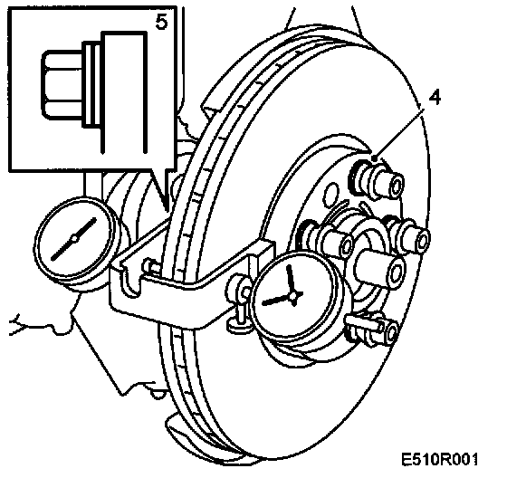 9. Remove the dial gauges, brake disc measuring tool and wheel studs with washers.