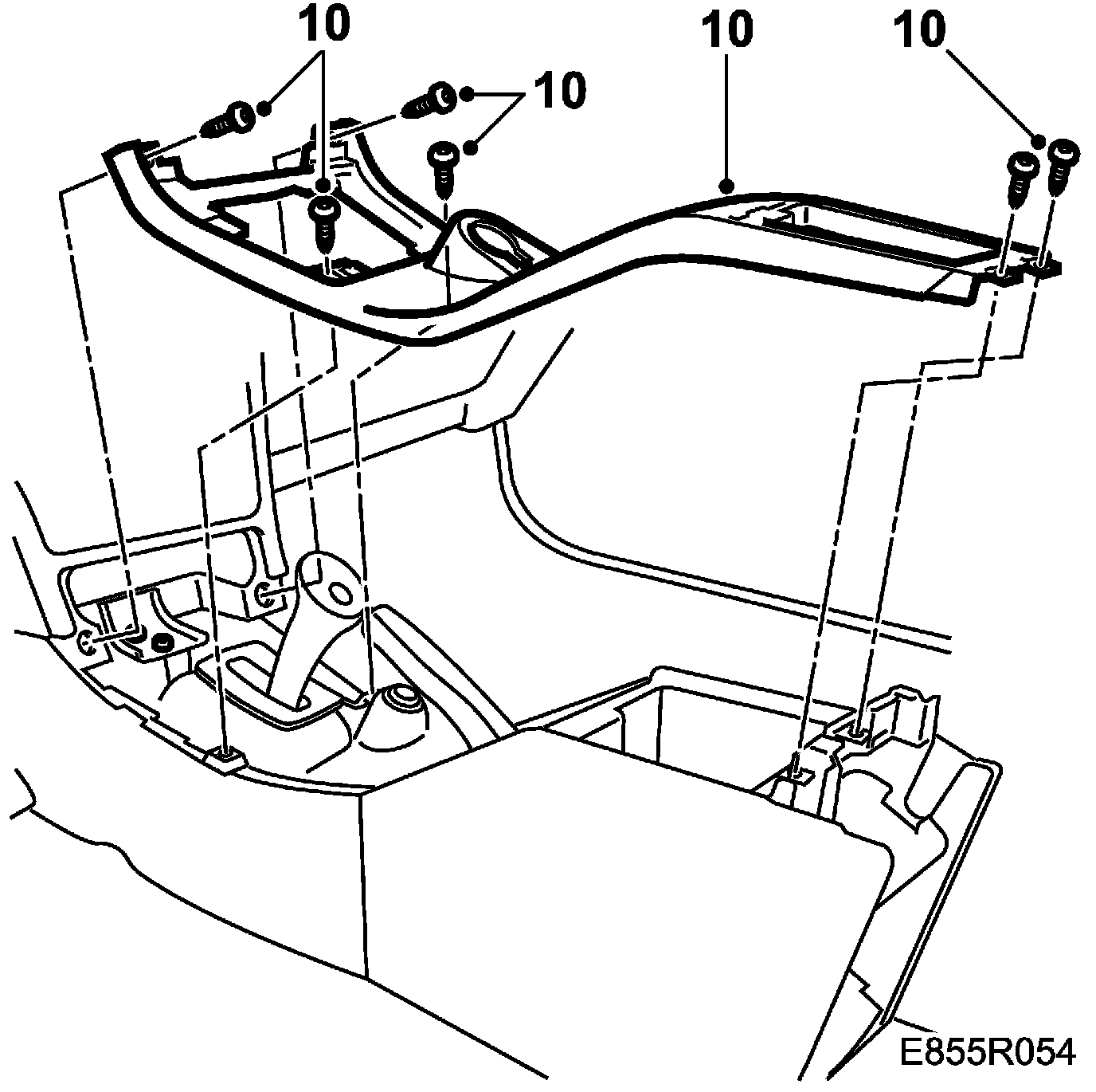 10. Remove the screws holding the upper part of the center console, 6 screws.