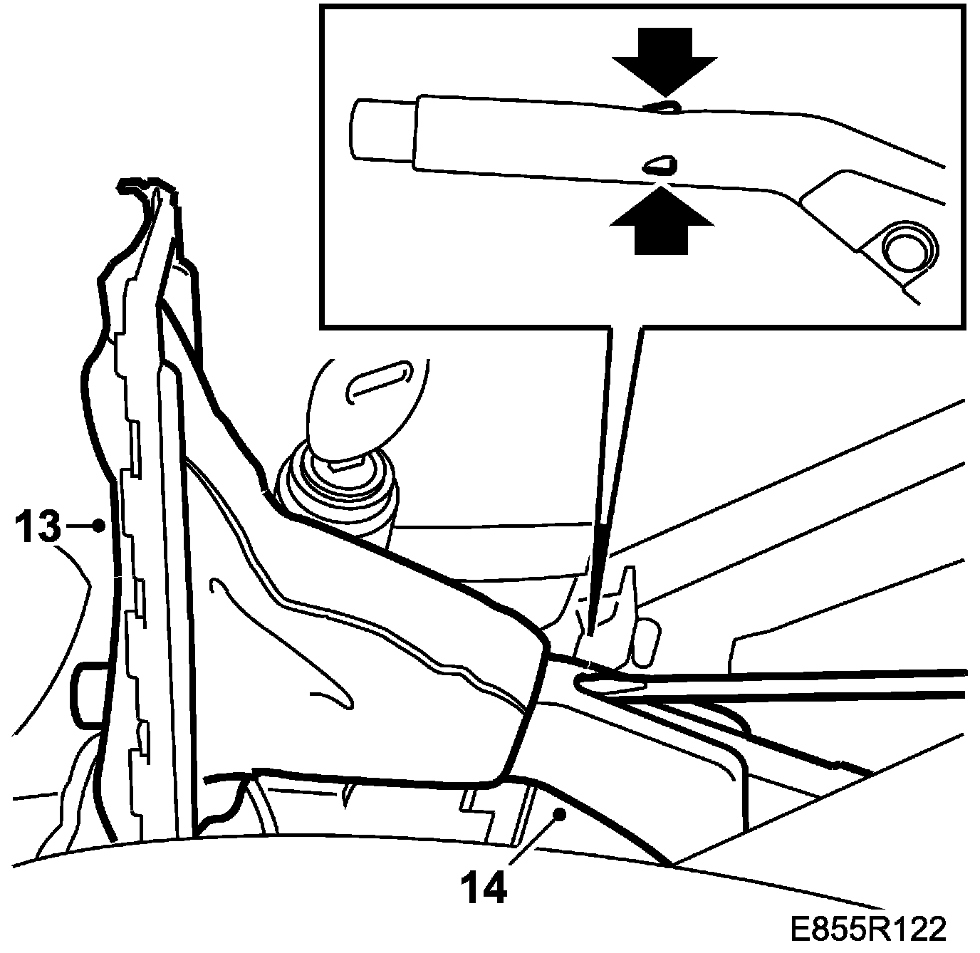 13. Pull the gaiter forwards over the lever (destructive removal).