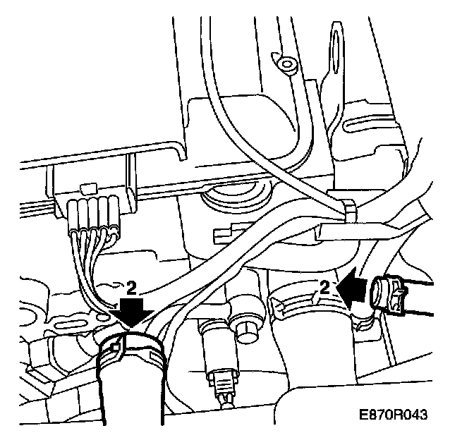 6 Connect the heat exchanger coolant hoses to the connections on the engine.